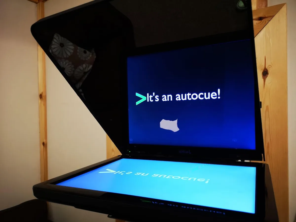 When choosing an autocue hire service in Manchester, you should consider the reliability of the system. Our teleprompter solutions are powered by laptops running professional-grade prompting software. This is a significant advantage over simpler tablet-based systems. A laptop-powered setup allows for quick and easy script edits on the fly, which is crucial when last-minute changes are needed during a shoot or live event.